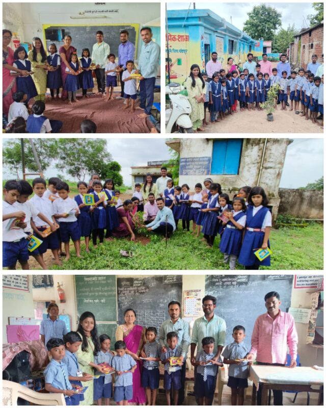 ब्रम्हपुरी(दि.2ऑगस्ट):-चंद्रपूर जिल्ह्यातील ब्रम्हपुरी विभागात मागील 7 वर्षांपासून विविध सामाजिक उपक्रम राबवीत असलेला “युवा समाजसेवक, तथा न्यू लाईफ बहूउद्देशिय संस्था, ब्रम्हपुरी” ह्या सामाजिक संस्थेचे संस्थापक उदयकुमार सुरेश पगाडे यांनी आपल्या वाढदिवसानिमित्त दि. 01/08/2023 रोजी मंगळवारला ब्रम्हपुरी शहरानजिकच्या खरबी व माहेर ह्या गावातील दोन्ही जिल्हा परिषद प्राथमिक शाळांना, संस्थेच्या सर्व सदस्यांसोबत भेटी दिल्या. तेथील सर्व शालेय विद्यार्थ्यांशी प्रेमळ हितगुज साधून सर्वांना नोटबूक, पेन, पेन्सिल, रबर, शार्पनर इत्यादी शालेय वस्तूंचा वाटप करण्यात आला. आणि दोन्ही शाळेच्या परिसरात वृक्षारोपण करून वाढदिवस साजरा केला.