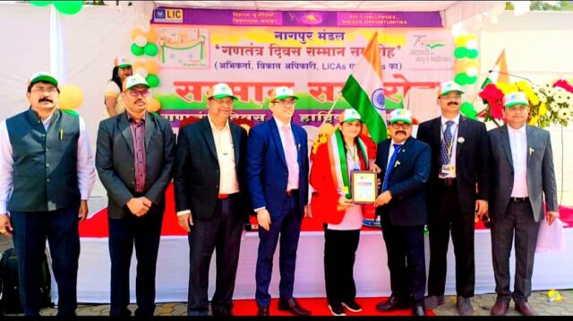 ७५ व्या प्रजासताक दिनी उत्कृष्ठ आयुर्विमा प्रदात्यांचा एल आय सी नागपुर मंडल तर्फे सत्कार