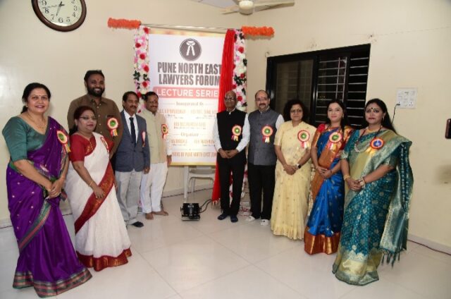 पुणे- नॉर्थ ईस्ट लॉयर फोरम या संघटनेचा दिमाखदार उद्घाटन विविध मान्यवरांच्या उपस्थितीत पुण्यातील विश्रांतवाडी येथील कस्तुरबा हॉल येथे नुकतेच करण्यात आले होते. याप्रसंगी प्रमुख पाहुणे म्हणून पुण्याचे प्रभारी जिल्हा न्यायाधीश केपी नांदेडकर , पुण्याच्या कौटुंबिक न्यायालयाच्या प्रमुख न्यायाधीश मनीषा काळे यांच्या उपस्थितीत झाले. याप्रसंगी महाराष्ट्र गोवा बार कौन्सिलचे उपाध्यक्ष ॲड. राजेंद्र उमाप,पुण्याचे जिल्हा न्यायाधीश के एन शिंदे ,महाराष्ट्र गोवा बार कौन्सिलचे सदस्य ॲड. अहमदखान पठाण, पुणे बार असोसिएशनचे माजी अध्यक्षॲड. सतीश मुळीक, पुणे बार असोसिएशनचे अध्यक्ष ॲड.केतन कोठावळे, पुणे कौटुंबिक न्यायालयाचे अध्यक्षा ॲड.वैशाली चांदणे , पुणे बारअसोसिएशनच्या माजी सेक्रेटरी व पुणे नॉर्थ ईस्ट लॉयर फोरमच्या फौंडर ॲड.सुरेखा भोसले , पुण्याच्या ज्येष्ठ वकील वपुणे नॉर्थ ईस्ट लॉयर फोरमच्या फौंडर ॲड.माधवी पोतदार आदी मान्यवर उपस्थित होते.