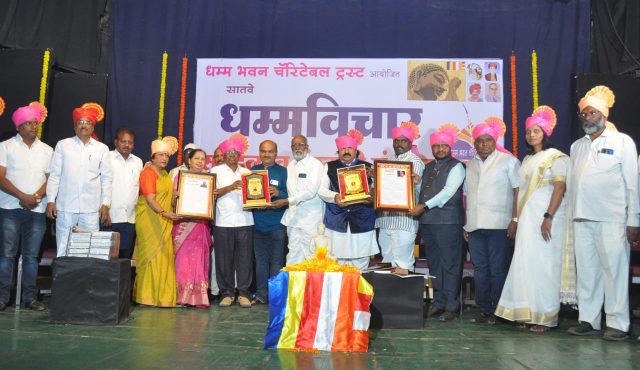 यावेळी सुप्रसिद्ध विद्रोही शाहीर संभाजी भगत आणि ज्येष्ठ सामाजिक कार्यकर्ते मधुकर शिर्के यांना या वर्षीचा धम्म भवन चॅरिटेबल ट्रस्टचा मानाचा, सन्मानाचा आणि स्वाभिमानाचा सातवा धम्मदीप जीवन गौरव पुरस्कार देऊन सन्मानित करण्यात आले.