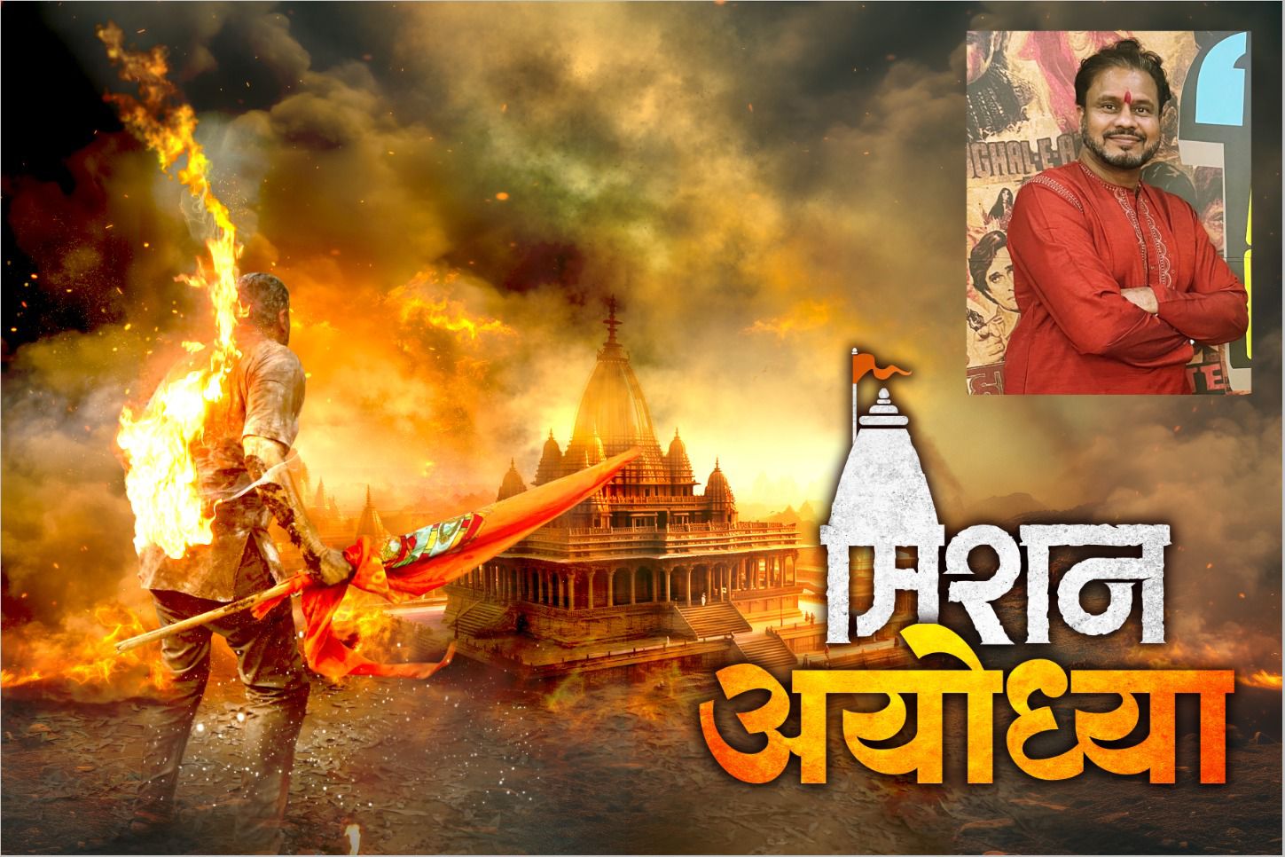 मुंबई(दि.23जानेवारी):- निर्माते कृष्णा दादाराव शिंदे आणि योगिता कृष्णा शिंदे यांच्या ‘आर के योगिनी फिल्म्स प्रॉडक्शन प्रा. लि.’ निर्मित ‘मिशन अयोध्या’ या चित्रपटातील साहसदृश्याची सध्या सर्वत्र चर्चा होत आहे. हे साहस दृश्य जीवावर उदार होऊन चित्रपटात ‘कारसेवक विचारे’ ही प्रमुख भूमिका करणारे कलावंत डॉ. अभय कामत यांच्यावर चित्रित झाले आहे. चित्रपटातील एका दृश्यात प्रभू श्रीरामांचा झेंडा जाळण्याचा प्रयत्न चित्रपटातील खलनायक करीत असतो. त्याच्या हातातून हा झेंडा खेचून कारसेवक विचारेंना तो वाचवायचा आहे.