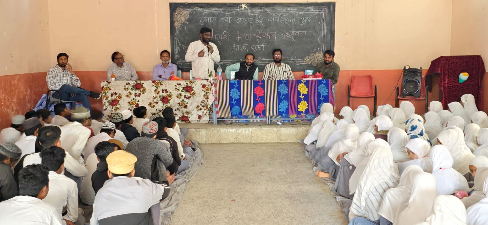 भाषण स्पर्धेतील उपस्थित परीक्षकांनी उर्दू माध्यमाच्या विद्यार्थ्यांच्या भाषणाला पाहून त्यांचे कौतुक केले.