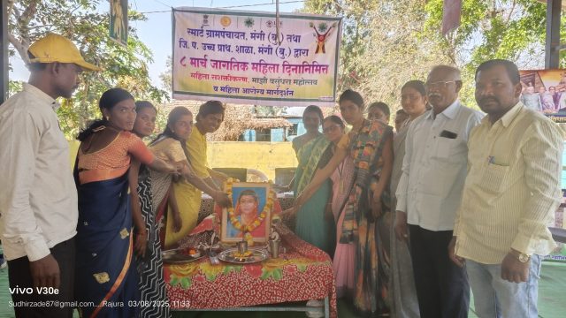 राजुरा(दि.9मार्च):- स्मार्ट ग्राम मंगी (बु) व जिल्हा परिषद उच्च प्राथमिक शाळा मंगी ( बु.) च्या संयुक्त विद्यमाने जागतिक महिला दिन उत्साहात साजरा करण्यात आला. कार्यक्रमाची सुरुवात माझी वसुंधरा 5.0 ची शपथ घेऊन करण्यात आली. गावातील विविध क्षेत्रातील उत्तम कार्य करणाऱ्या प्रातिनिधिक स्वरूपात पाच महिलांचा सन्मान करण्यात आला.