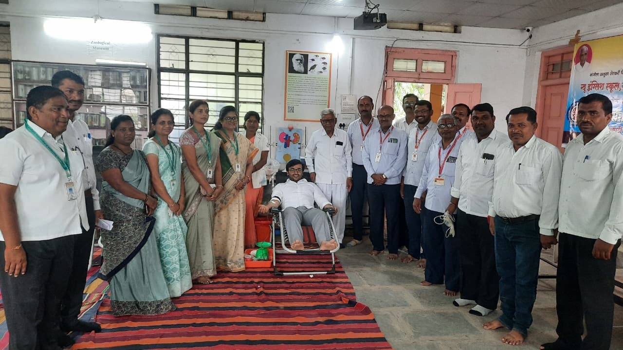 सांगोला / प्रतिनिधी- ११ ऑगस्ट रोजी स्व.आ.डॉ. भाई गणपतरावजी देशमुख यांच्या जयंती निमित्त भव्य रक्तदान शिबीर डॉ. गणपतराव देशमुख महाविद्यालय सांगोला व न्यू इंग्लिश स्कूल सांगोलाच्या कॅम्पस मध्ये संपन्न झाले. सदर कार्यक्रमास प्रमुख पाहुणे म्हणून संस्थेचे अध्यक्ष मा.डॉ. अनिकेत (भैय्या) देशमुख व कार्यक्रमाचे अध्यक्ष म्हणून संस्थेचे सचिव मा.श्री. विठ्ठलराव शिंदे सर हे उपस्थित होते. कार्यक्रमाचे प्रास्ताविक प्रा. ज्योतिबा हुरदुके यांनी केले. त्यानंतर कार्यक्रमाचे प्रमुख पाहुणे डॉ. अनिकेत (भैय्या) देशमुख यांनी आपले मनोगत व्यक्त केले त्यामध्ये त्यांनी असे सांगितले कि स्व.आ.डॉ. भाई गणपतरावजी देशमुख यांच्या जयंती निमित्त सर्वानी रक्तदान करून सामाजिक बांधिलकी जोपासावी. त्यानंतर कार्यक्रमाचे अध्यक्ष मा.श्री. विठ्ठलराव शिंदे सर यांनी आपले मनोगत व्यक्त केले त्यात त्यांनी असे सांगितले कि स्व.आ.डॉ. भाई गणपतरावजी देशमुख यांनी आयुष्यभर जनतेची सेवा केली त्यांचा वारसा आपल्याला जपण्यासाठी आपण सर्वांनी रक्तदान करून तो वारसा जिवंत ठेवूया.
