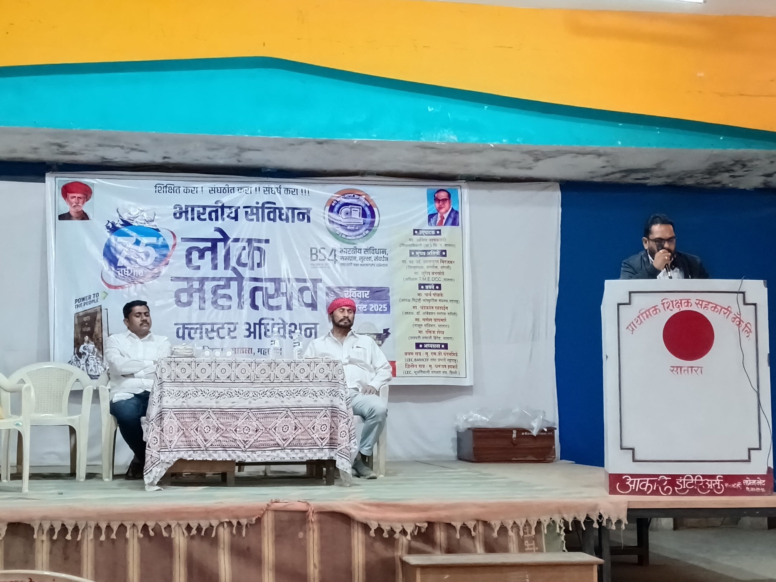 म्हसवड (सातारा ) : बी एस फोर अभियानांतर्गत भारतीय संविधान लोक महोत्सव अर्थात जिल्हा क्लस्टर अधिवेशन सातारा येथील शिक्षक बँक सभागृहात उत्साहात संपन्न झाले.