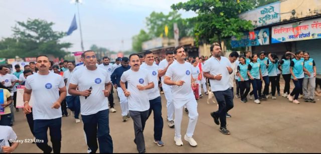 अधिकारी कर्मचारी व सर्व नागरिकांनी सकाळी तीन किलोमीटर धावून सरदार वल्लभभाई पटेल यांची जयंती साजरी केली याप्रसंगी जीवराज डापकर,श्रीकांत डोंगरे यांनी उपस्थितांना मार्गदर्शन केले कार्यक्रमाचा उद्देश सांगितला या कार्यक्रमाचे सूत्रसंचलन पदूदेव जोशी यांनी केले तर आभार योगगुरू प्रकाश डिकळे यांनी मानले या कार्यक्रमाची सांगता वंदे मातरम् ने करण्यात आली हा कार्यक्रम यशस्वी करण्यासाठी सर्वांनी सहकार्य केले