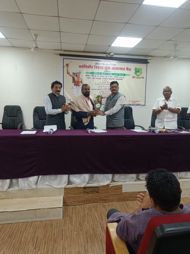आपल्या अध्यक्षीय भाषणातून डॉ. सतीश कन्नाके यांनी बिरसा मुंडा यांच्या कार्याचे सविस्तर विवेचन केले ते म्हणाले वसाहतीच्या मुक्तीच्या त्यांच्या लढ्यातून शोषण विरोधातील आवाज बळकट होण्यास चालना मिळाली.याप्रसंगी अध्यासन केंद्राचे प्रस्तावक डॉ. संजय गोरे यांनी बिरसा मुंडा यांच्या कार्यावर प्रकाश टाकला व अध्यासन केंद्राच्या विविध कार्याची व उद्देशाची सविस्तर माहिती दिली.