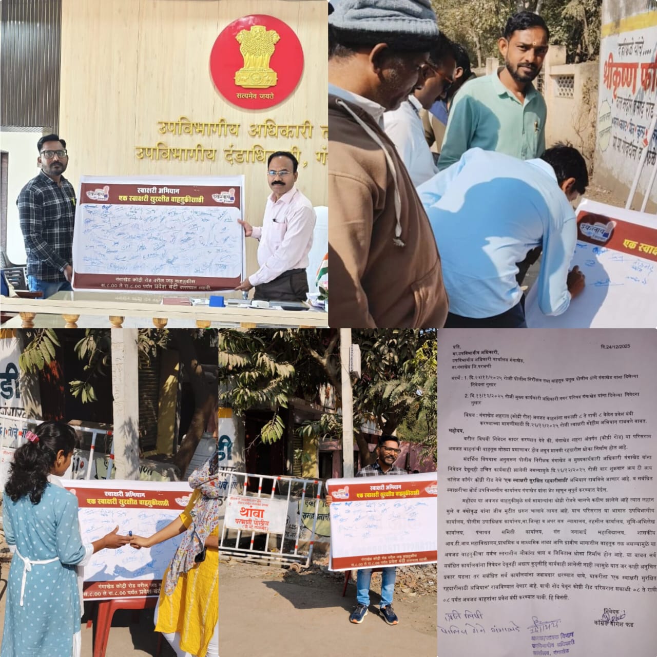 गंगाखेड(दि.27डिसेंबर):- शहरातील कोद्री रोड परिसरात सुरू असलेल्या अवजड वाहनांच्या वाहतुकीमुळे नागरिकांच्या सुरक्षिततेचा गंभीर प्रश्न निर्माण झाला असून.सकाळी ८ ते रात्री ८ या वेळेत अवजड वाहनांना प्रवेश बंदी घालण्यात यावी,या मागणीसाठी (दि.२६ डिसेंबर शुक्रवार) रोजी ‘एक स्वाक्षरी सुरक्षित रहदारीसाठी’ या नावाने स्वाक्षरी मोहीम अभियान कॉ.योगेश फड यांनी