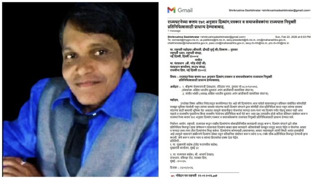 •असा प्रश्न उपस्थित करत राष्ट्रपती, पंतप्रधान,राज्यपाल व मुख्यमंत्री यांना ईमेल द्वारे निवेदन.