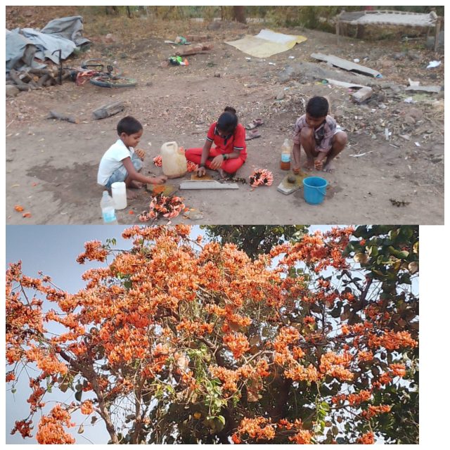 Home महाराष्ट्र निसर्गरंगांची रंगपंचमी पळसाच्या फुलांनी खुललेला उत्सव,मुलांकडून नैसर्गिक रंगांचा संदेश