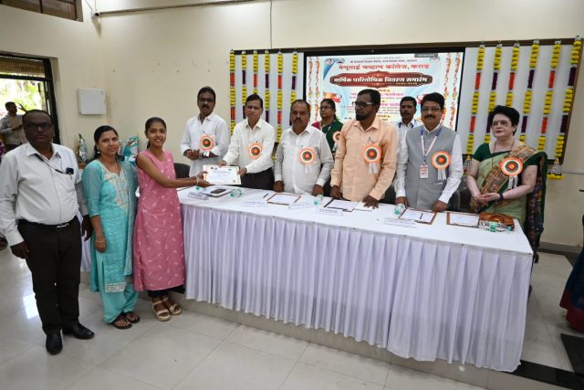 कराड(दि.31मार्च):- श्री शिवाजी शिक्षण संस्था, उच्च शिक्षण मंडळ, कराडचे वेणूताई चव्हाण कॉलेज कराड येथे वार्षिक पारितोषिक वितरण समारंभ उत्साहपूर्ण वातावरणात पार पडला. कार्यक्रमाचे प्रमुख अतिथी मा. श्री. बी. एन. कालेकर (माजी प्राचार्य) यांनी विद्यार्थ्यांना मार्गदर्शन करताना कठोर परिश्रम, शिस्त व सातत्य यांचे महत्त्व अधोरेखित केले. समारंभाचे अध्यक्ष श्री शिवाजी शिक्षण संस्था, उच्च शिक्षण मंडळ, कराडचे जनरल सेक्रेटरी मा. श्री.अल्ताफहुसेन मुल्ला साहेब यांनी आपल्या अध्यक्षीय मनोगतात विद्यार्थ्यांनी सामाजिक बांधिलकी जपत प्रगती साधावी, असे आवाहन केले.
