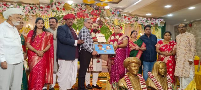 म्हसवड(दि.8एप्रिल):-फुले शाहू आंबेडकर एज्युकेशनल अँड सोशल फाऊंडेशन पुणे चे बहुउद्देशीय सत्यशोधक केंद्रातर्फे थोर समाज सुधारक महात्मा फुले यांच्या 199 व्या जयंतीनिमित्त सोमवार दि.6 एप्रिल 2025 रोजी सायंकाळी 6 वाजता श्री सिद्वेश्वर सभागृह , नागपूर येथे सत्यशोधक विकास दत्तात्रय बोराटे ,फलटण आणि सत्याशोधिका प्रतिक्षा सुरेश पोहनकर यांचा महात्मा फुले यांना अभिप्रेत असलेल्या पद्धतीने मोफत 55 वा. सत्यशोधक विवाह सोहळा शानदार पणे पार पडला.याप्रसंगी मी सावित्रीमाई फुले बोलतेय हे नाटक चंद्रपूर च्या आयु.गायत्री अनिलकुमार रामटेके यांनी प्रबोधनात्मक सादर केल्याने सोहळ्यास मोठी रंगत आली.