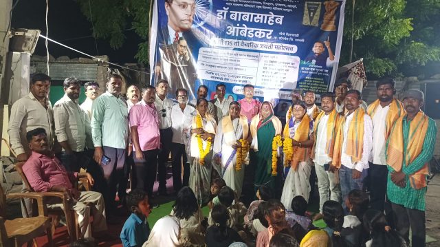 गंगाखेड(दि.24एप्रिल):-सोनपेठ व गंगाखेड तालुक्याच्या सीमेवरील वैतागवाडी या गावात,जिथे बौद्ध समाजाचे एकही घर नाही,अशा ठिकाणी होलार समाजाने विश्वरत्न डॉ.बाबासाहेब आंबेडकर यांच्या १३५ व्या वैचारिक जयंतीनिमित्त (दिनांक २१ एप्रिल मंगळवार) रोजी होलार समाजातील महिलांनी पुढाकार घेत तसेच जयंती समितीचे अध्यक्ष पद भूषवत अत्यंत प्रेरणादायी आणि विचारप्रवर्तक कार्यक्रमाचे आयोजन करून एक आदर्श निर्माण केला.कार्यक्रमाची सुरुवात महामानवांच्या प्रतिमेला अभिवादन करून करण्यात आली. कार्यक्रमाच्या अध्यक्षस्थानी ॲड.मिलिंद क्षीरसागर होते,तर उद्घाटक म्हणून गावचे सरपंच विठ्ठल होरे यांनी उपस्थिती लावली.प्रमुख मार्गदर्शक व व्याख्याते महाराष्ट्रातील सुप्रसिद्ध संविधान अभ्यासक प्रा.एम.एम.सुरनर यांनी प्रभावी मार्गदर्शन केले.कार्यक्रमास प्रमुख पाहुणे म्हणून ॲड.अनिल सावंत,प्रा.विष्णू आसोरे, प्रभाकर सातपुते,ॲड.राजकुमार गरुड,पत्रकार महेमूद शेख,तसेच सामाजिक कार्यकर्ते संतोष आवळे, जयदेव खांडेकर,बाळासाहेब वाहुळे, मदन वाहुळे,दिलीप वाहुळे,जांबाळे पोलिस पाटील आदी मान्यवर उपस्थित होते.