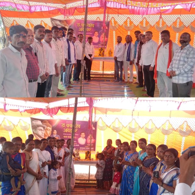 सर्व मान्यवरांच्या हस्ते पंचशील व निळया ध्वजाचे ध्वजारोहण करून महामानव डॉ. बाबासाहेब आंबेडकर यांच्या जीवन चरित्रावर प्रकाशमान टाकण्यात आला उपस्थित सर्व नागरिकांना भोजनदान देण्यात आले .